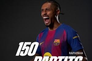 体育资讯9月22日讯 西甲第5轮比赛,巴萨在主场迎战赫塔费。本场比赛,拉菲尼亚迎来红蓝军团里程碑时刻,因为这是他代表球队第150次出场。