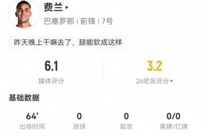 下一篇: 拉菲尼亚本场数据:射正、过人、关键传球挂零,获评6.3分