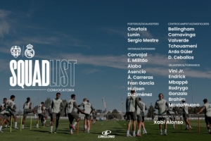 赛前,皇马官方社媒公布了此役球队大名单: