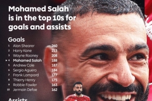 全文摘要:英超官方提问萨拉赫能否达成200球+100助攻里程碑。目前,他以188球位列历史射手榜第4,89助攻并列助攻榜第9。他距离射手榜第三仅差20球,距离助攻榜前五也仅差14次助攻。