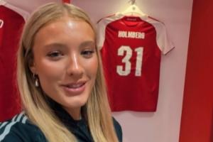阿森纳女足此前官宣签下19岁的瑞典后卫斯米拉·霍尔姆贝里,由于她形象出众,在球迷圈引来了不小的反响。