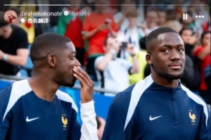 科纳特晒出了自己与登贝莱在国家队的合照,配文写道:“祝贺你,我的兄弟!🌕😍”
