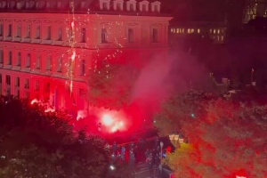 体育资讯9月23日讯 巴黎前锋登贝莱获得2025年金球奖,巴黎球迷放烟花庆祝。