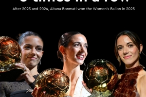 邦马蒂成为女足金球奖历史上最成功的球员,连续三次夺得金球奖,加入了克鲁伊夫、普拉蒂尼和范巴斯滕等男足传奇的行列。尽管她在个人表现上取得了巨大成功,但巴萨女足在欧冠决赛中失利以及西班牙女足国家队在欧洲杯决赛中的失败让她感到遗憾。不过,她的出色表现使她成为了这两项赛事的最佳球员。