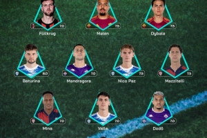 全文摘要:意甲官方公布第21轮最佳阵容。门将卡普里莱领衔,后卫为米纳、瓦莱和多多。中场由巴图里纳、曼德拉戈拉、尼科·帕斯及马齐泰利组成。锋线上,菲尔克鲁格、马伦和迪巴拉共同入选。罗马球员迪巴拉与马伦携手进入最佳前场。