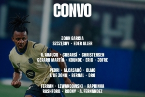 巴萨本场比赛大名单如下: