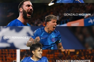 赛后,切尔西官方社媒祝贺成为第5个为蓝军进球的阿根廷球员。
