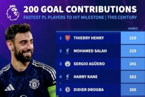 新世纪最快参与英超200球榜: