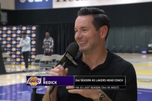 全文摘要:湖人主帅雷迪克接受采访,透露尚未与詹姆斯打高尔夫,因双方日程繁忙。但他称赞布朗尼的挥杆流畅,是天生运动员,并羡慕其高尔夫天赋,认为他会成为优秀球手。