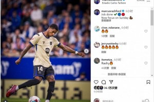 拉什福德社媒晒出比赛照片,配文:“任务完成,现在专注于周日的比赛(对阵皇家社会)。”