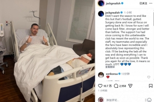 格拉利什本赛季被曼城外租至埃弗顿,他遭遇脚部应力性骨折,接受手术,他在社交媒体上写道:“真的不希望这个赛季以这样的方式结束,但这就是足球,令人心碎。手术已经完成,现在全部重心都放在恢复健康上。我确信自己回归时会比以往更健康、更强壮、更出色。”