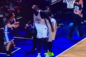 GIF-法尔抢到篮板被太阳老板伊什比亚生抢过来,随后推人