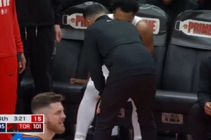 下一篇: 望无碍!华盛顿踩到克洛尼出现90度崴脚 一瘸一拐回到更衣室