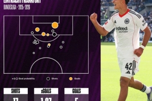 体育资讯9月30日讯 本赛季法兰克福19岁小将乌尊状态出色,连续5场德甲破门,5场比赛5球3助攻。