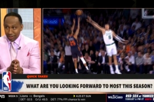 体育资讯10月1日讯 今天,NBA名嘴A-史密斯在《First Take》节目中谈到了新赛季的愿景。