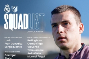 全文摘要:皇马将在西甲主场迎战马竞,公布大名单。姆巴佩、贝林厄姆等主力在列,但门将库尔图瓦因伤缺席。门将由卢宁等三人担任,后防与中场阵容齐整,锋线则由维尼修斯与姆巴佩领衔。
