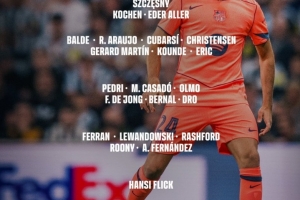 体育资讯10月5日讯 巴萨将在本轮西甲对阵塞维利亚,球队官方也公布了本场大名单,亚马尔、拉菲尼亚缺战,具体如下: