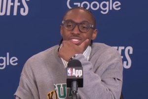 记者:“我想顺着这个话题继续问,我们在打完奥兰多的比赛后谈到过一点,但你在球队里作为第一进攻选择的位置,过去几个赛季你都是这么做的,但现在是在季后赛中面对一支争冠级别的球队。你觉得从这场比赛中学到了什么,能够帮助你在目前的处境中继续前进?”