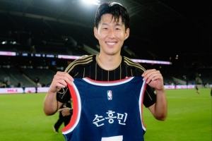 赛后,快船官方晒出一张照片,洛杉矶FC球星孙兴慜手持快船定制款球衣,笑容可掬。