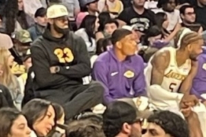 据洛杉矶记者Mark Medina报道,本场比赛詹姆斯来到了现场观战,他坐在队友旁边的一张高椅子上,大概是为了缓解坐骨神经痛。