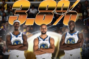 截止目前,勇士本赛季的夺冠的说是概率是3.8%。