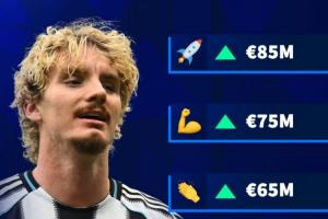 沃尔特马德今夏从斯图加特转会至纽卡,转会费7500万欧。本赛季他4场英超打入3球。