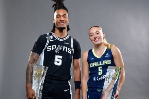 体育资讯10月22日讯 马刺官方社媒更新动态,他们晒出了一张卡斯尔和WNBA球员佩奇-布克斯各自手持最佳新秀奖杯的合照。