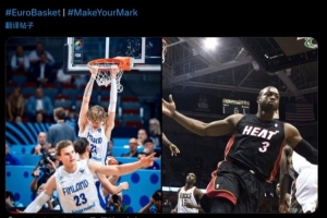 欧锦赛官方配文道:我会和我的小孩讲,这就是韦德和詹姆斯。