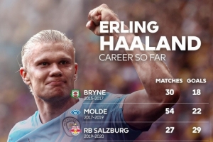 全文摘要:英超官方统计了哈兰德职业生涯的进球分布。数据显示,他在曼城149场打入127球,效力挪威队45场贡献48球。此外,他还曾效力于布莱尼、莫尔德、萨尔茨堡和多特蒙德,期间进球效率同样出色。