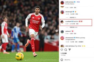 【小拉什福德】萨利巴在阿森纳17岁小将安努斯庆祝胜利的帖子下评论:“拉什福德😍😍”
