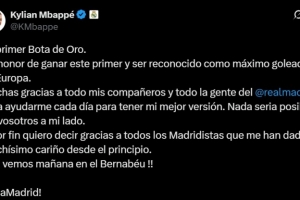 体育资讯10月31日讯 不久前,获得欧洲金靴的皇马前锋姆巴佩更新社交媒体,感谢了队友和球迷的支持。