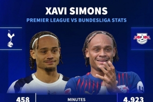 全文摘要:热刺新援哈维-西蒙斯从德甲转战英超后,数据出现明显下滑。英超至今仅出场458分钟,未取得进球,助攻1次;而他在德甲曾出场4923分钟,贡献18球和20次助攻。整体进攻效率,尤其是每90分钟参与进球数,均低于其在德甲的表现。