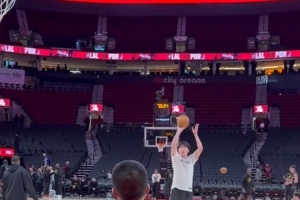 赛前,开拓者跟队记者@yovic晒出视频,杨瀚森赛前投篮热身试投三分手感不俗。
