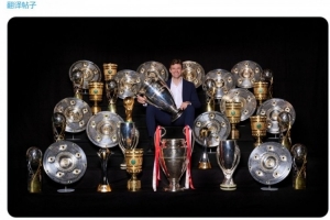 拜仁官方社媒晒出穆勒与奖杯的合照,配文:“第一无二的托马斯-穆勒今天迎来36岁生日,我们衷心祝愿这位传奇生日快乐!”