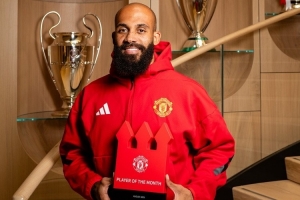姆伯莫领取了曼联8月最佳球员的奖杯,曼联官方社媒晒照,对他表示祝贺。