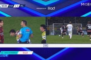 裁判在VAR的介入检查后没有判罚点球,米兰暂时客场2-1领先!