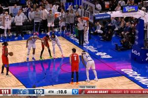 上一篇: 班凯罗落后2分时杀入内线,在1打2情况下造成犯规,可惜罚球不中。