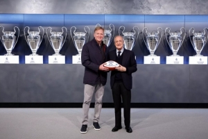 今天,皇马主席弗洛伦蒂诺与NFL总裁罗杰·古德尔会面并互赠礼物,弗洛伦蒂诺获赠橄榄球,古德尔获赠皇马1号球衣以及伯纳乌模型。
