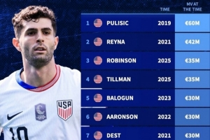 全文摘要:德国转会市场盘点了美国球员历史身价排名。普利西奇以2019年的6000万欧元位列榜首,雷纳、罗宾逊等球员紧随其后。该排名反映了美国球员在足坛的市场价值与成长潜力。