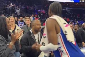 GIF-马克西一路搂着哈登,后者穿越人海拥抱马克西母亲