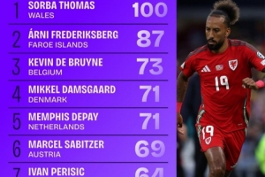 全文摘要:世欧预小组赛结束,进入禁区次数榜公布。威尔士边锋索尔巴·托马斯以100次领跑,法罗群岛的弗雷德里克斯伯格(87次)和比利时球星德布劳内(73次)分列二、三位。完整榜单包含前十名球员,展现了各队攻击手的突破与威胁能力。