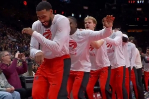 GIF-猛龙赛前仪式 排着长龙突然起舞