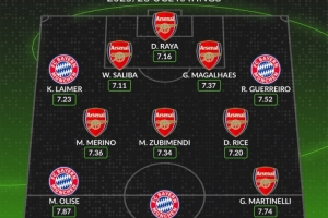 全文摘要:whoscored公布拜仁与阿森纳本赛季欧冠评分最佳阵。阿森纳7人入选,包括门将拉亚及后卫萨利巴、马加良斯;中场梅里诺、苏维门迪、赖斯;前锋马丁内利。拜仁方面,前锋凯恩以8.60分高居榜首,奥利塞和后卫格雷罗也入选。