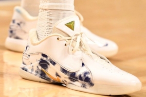 重回洛杉矶的安东尼·戴维斯脚穿勒布朗22球鞋进行热身。