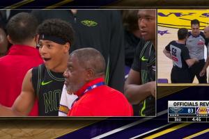 链接>>>很生气!东契奇上篮被鹈鹕新秀费尔斯大动作犯规 下来和后者顶牛