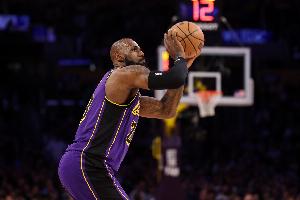 本场三分5中0之后,詹姆斯本赛季至今三分球合计只有27中7,命中率仅25.9%。