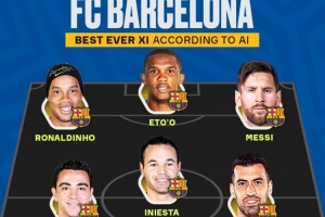 AI评巴萨队史最佳阵容: