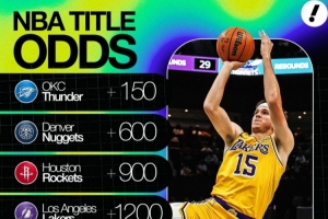 体育资讯12月8日讯 博彩网站更新了本赛季夺冠赔率,雷霆、掘金、火箭、湖人前四,具体如下: