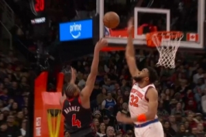 下一篇: 巴恩斯低位接球,运球晃过哈特,随后双手完成暴扣。