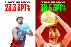 阿尔佩伦·申京本赛季三分球命中率大幅提升,解锁了全新的比赛风格。🔥